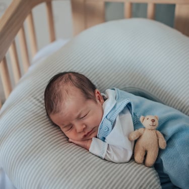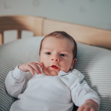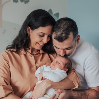 Para o ensaio Newborn, preferimos os primeiros 15 dias de vida. Nessa fase, os bebês estão mais sonolentos, não têm muitas cólicas e são mais flexíveis, o que facilita as poses e torna o ensaio mais tranquilo.